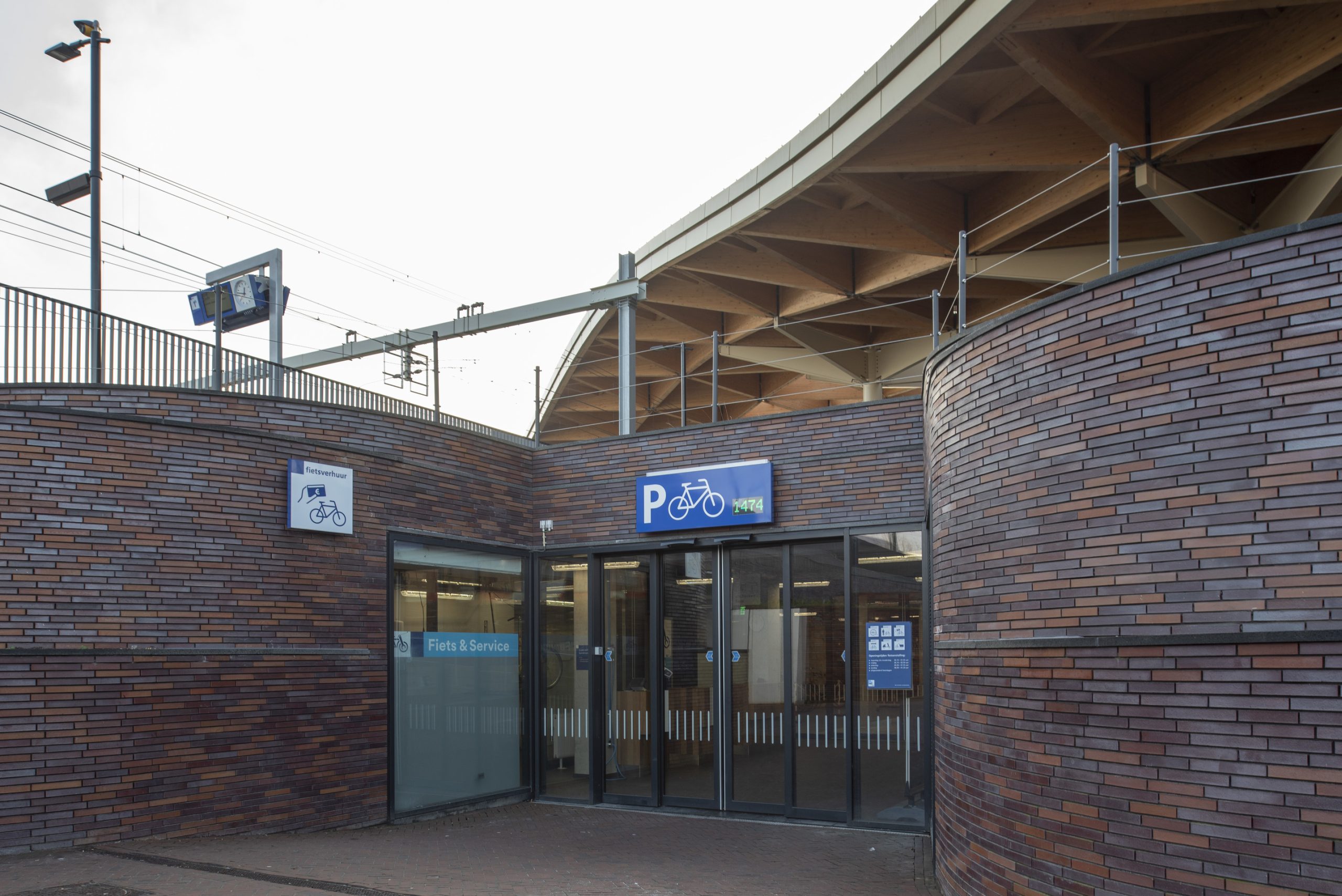 Het station wordt gemarkeerd door een driehoekige stationskap die de verschillende programmatische onderdelen van het station met elkaar verbindt, en die letterlijk en figuurlijk een brug slaat over de fysieke barrière die de sporen door de stad leggen. De houten luifel maakt een genereus gebaar naar de reizigers die aankomen en vertrekken. De drie hoeken markeren ieder een andere ingang naar het gebouw.
