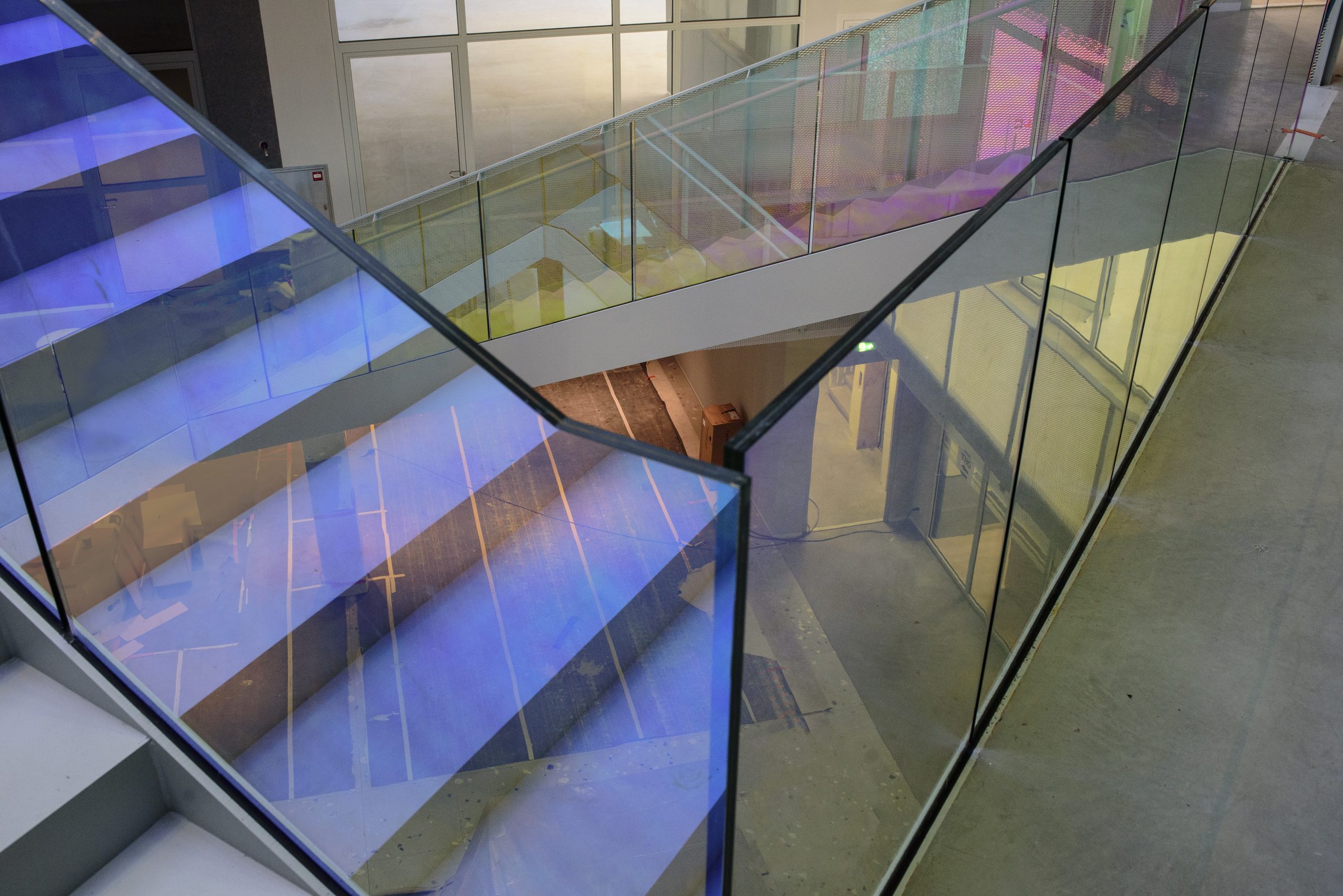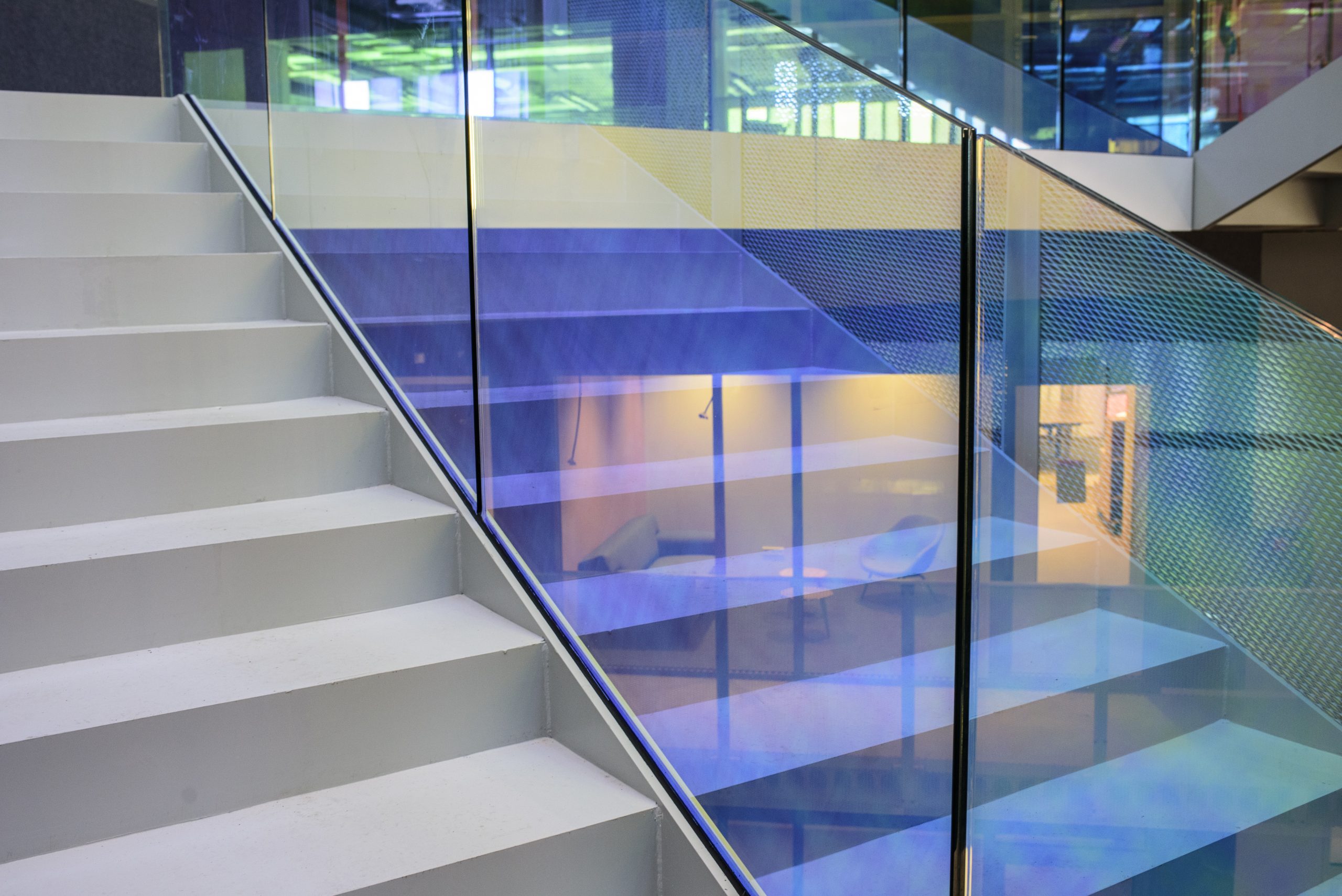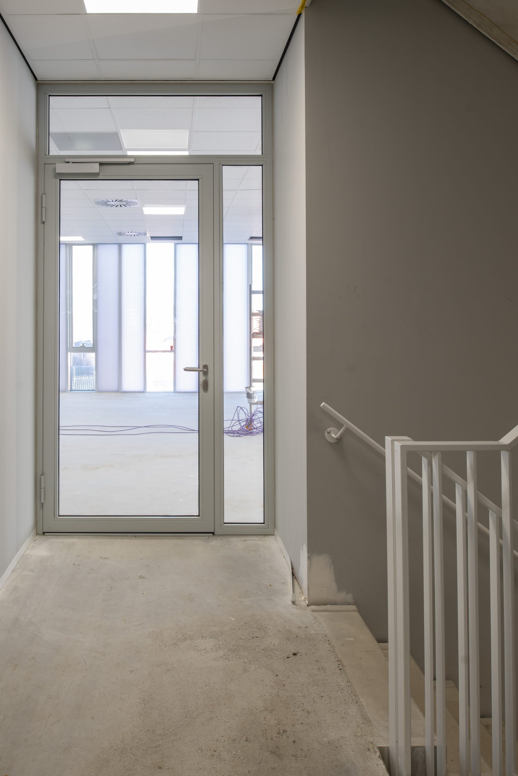 In het atrium bevindt zich een glazen trap die in het midden omhoog gaat. Dit centraal glazentraphekwerk laat daglicht vrij door het atrium stromen en creëert een gevoel van openheid en ruimte. Verder hebben we de binnenkozijnen mogen verzorgen bij het ultra plus gebouw.