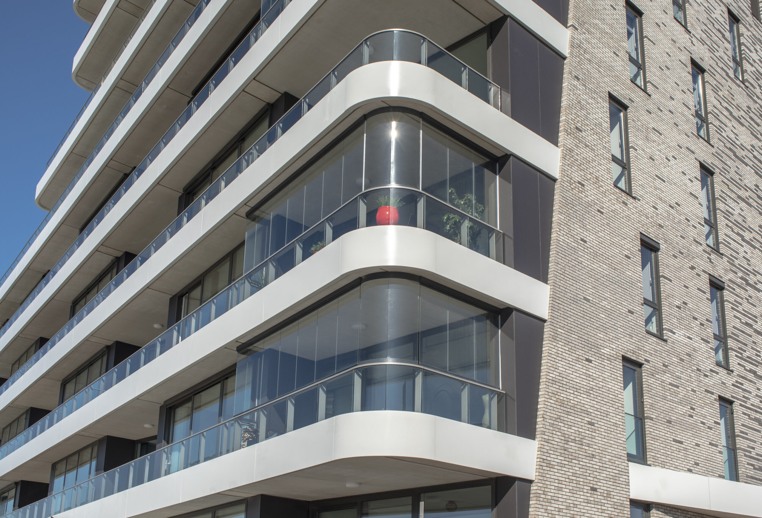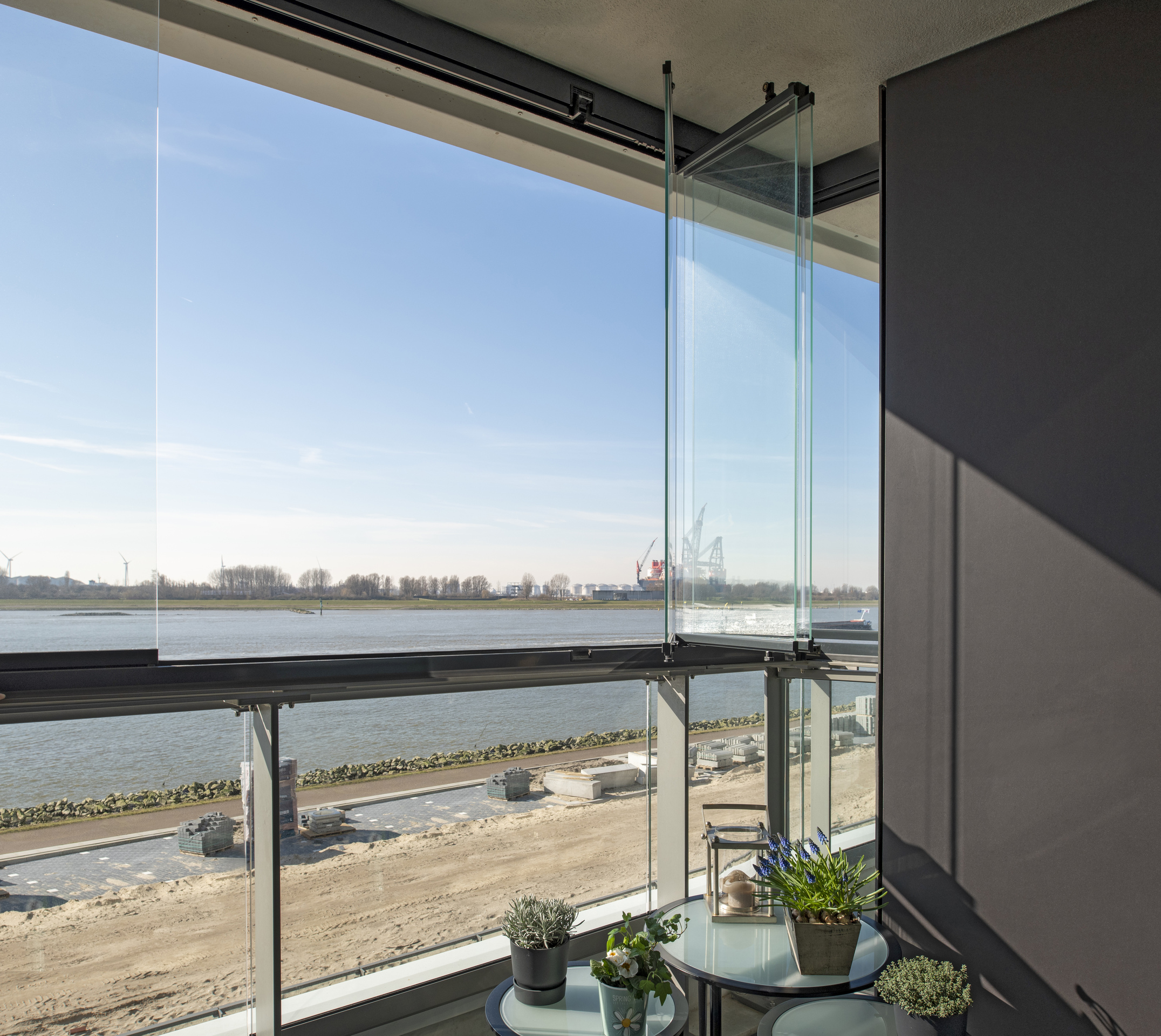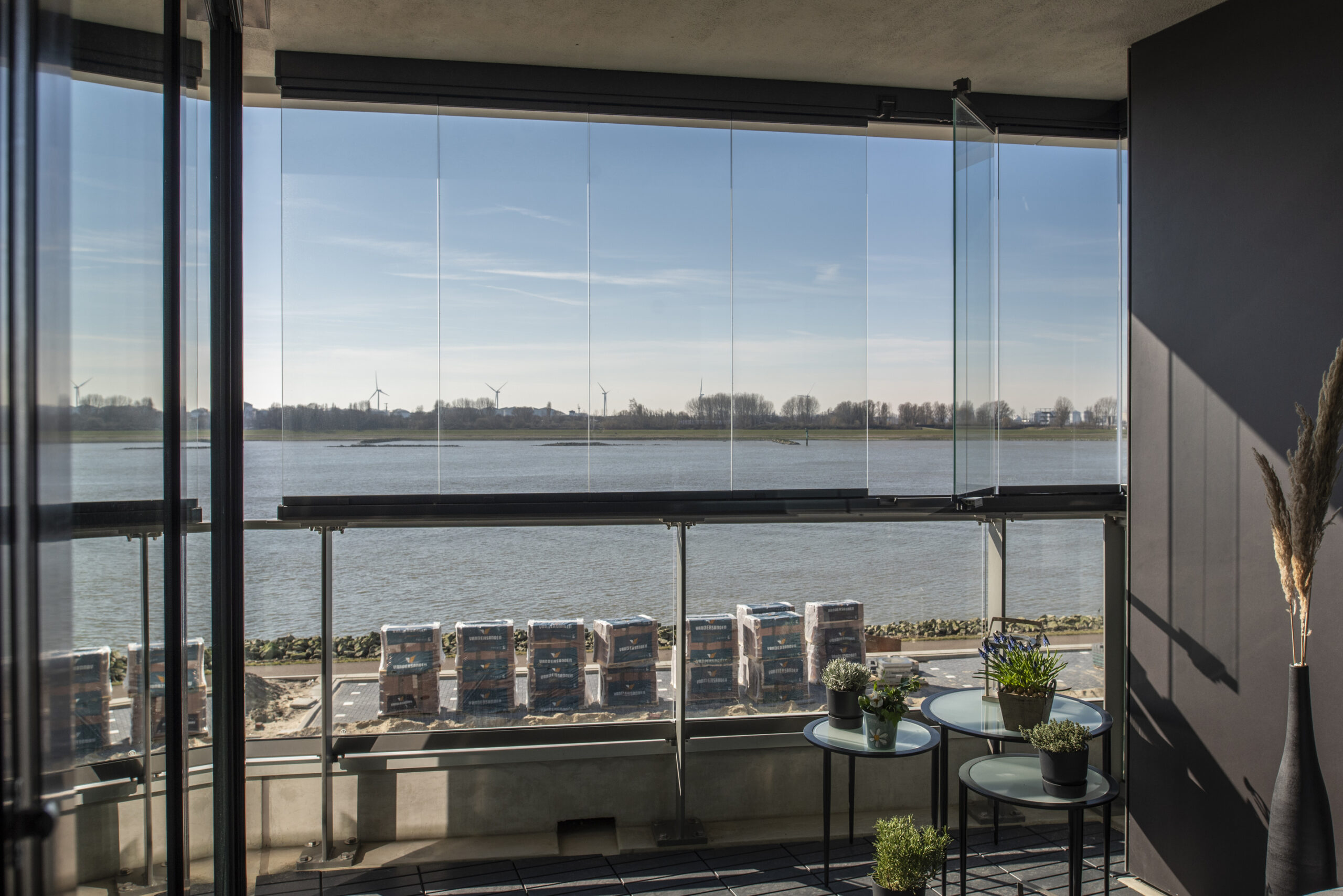 Naast het leveren van al het paneelhekwerk met glas, de aluminium privacyschermen en het lamellenhekwerk t.b.v. van de trappen binnen, hebben we ook onze samenwerking met Lumon Group laten zien. Een aantal balkons hebben we namelijk voorzien van glazen vouwschermen. Zo kan je genieten van het buitenleven zonder dat het uitzicht belemmerd wordt.