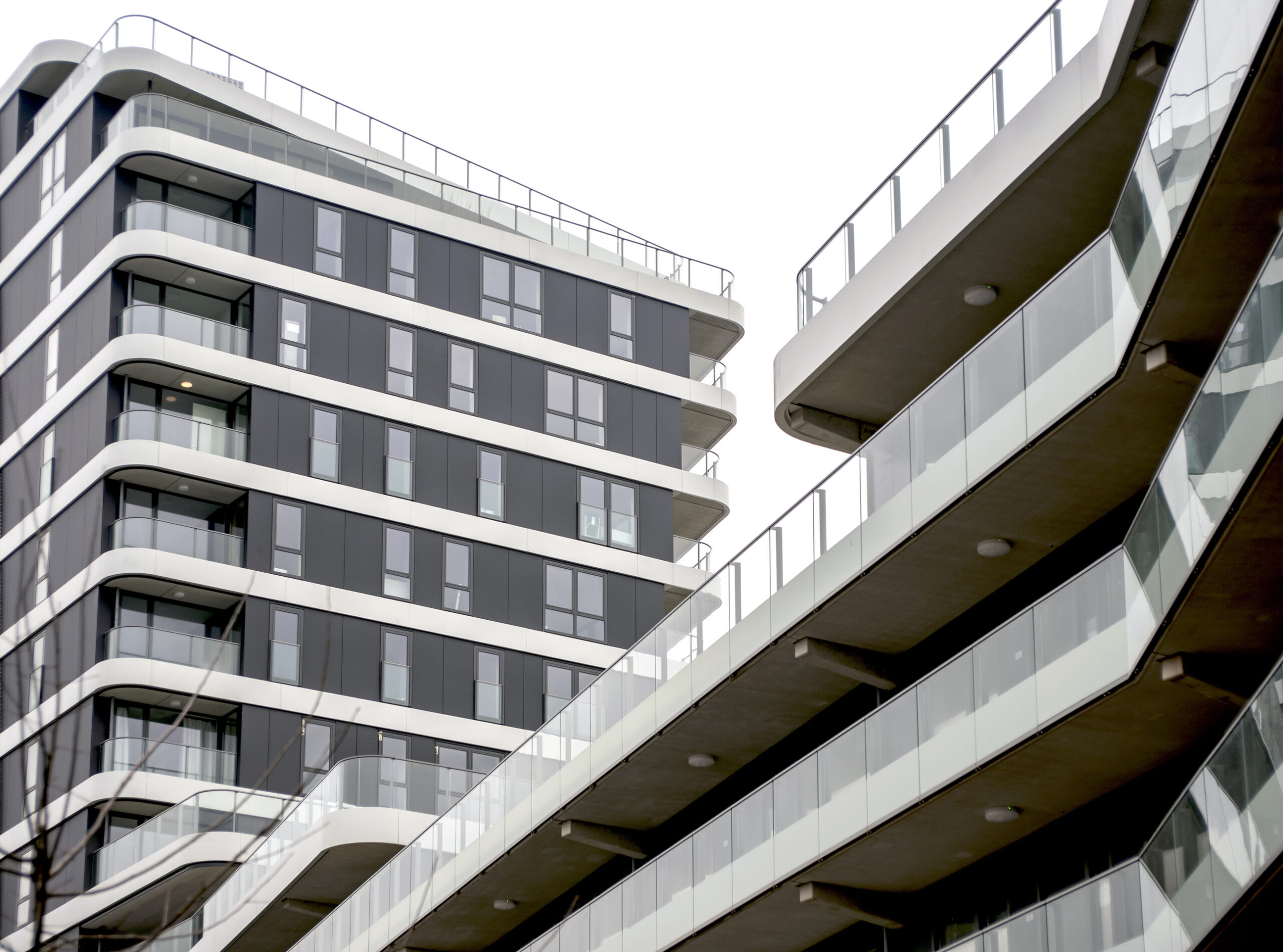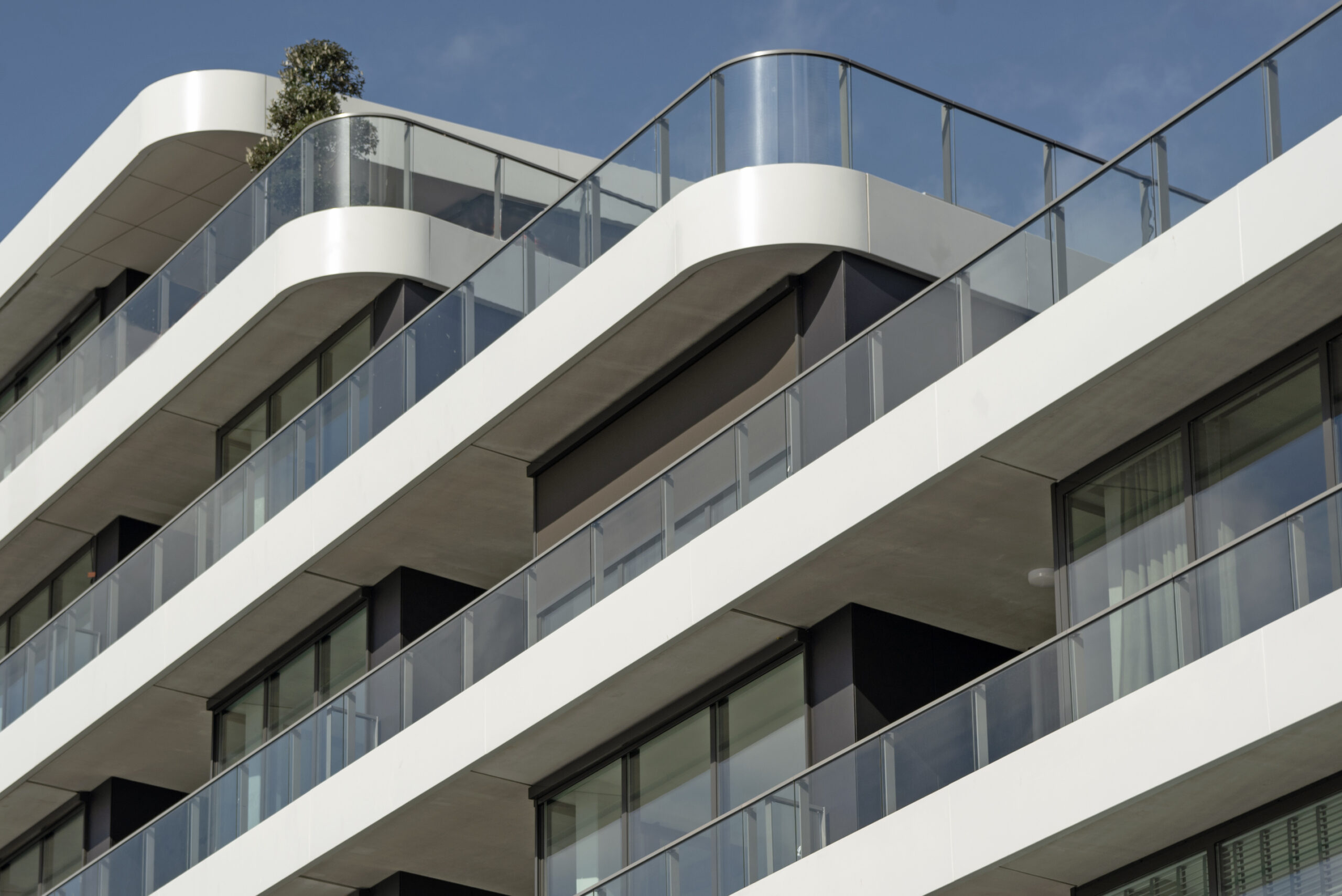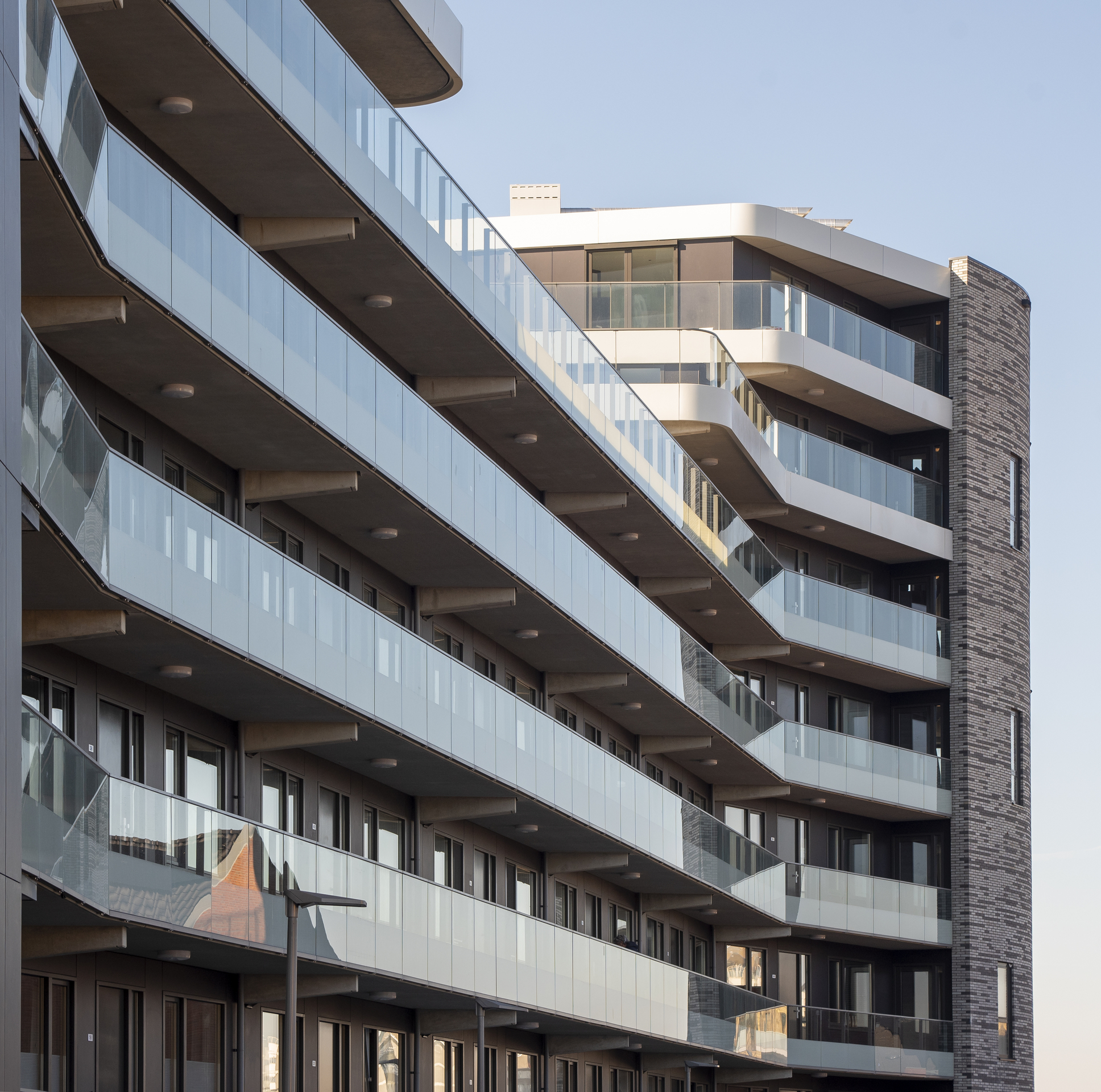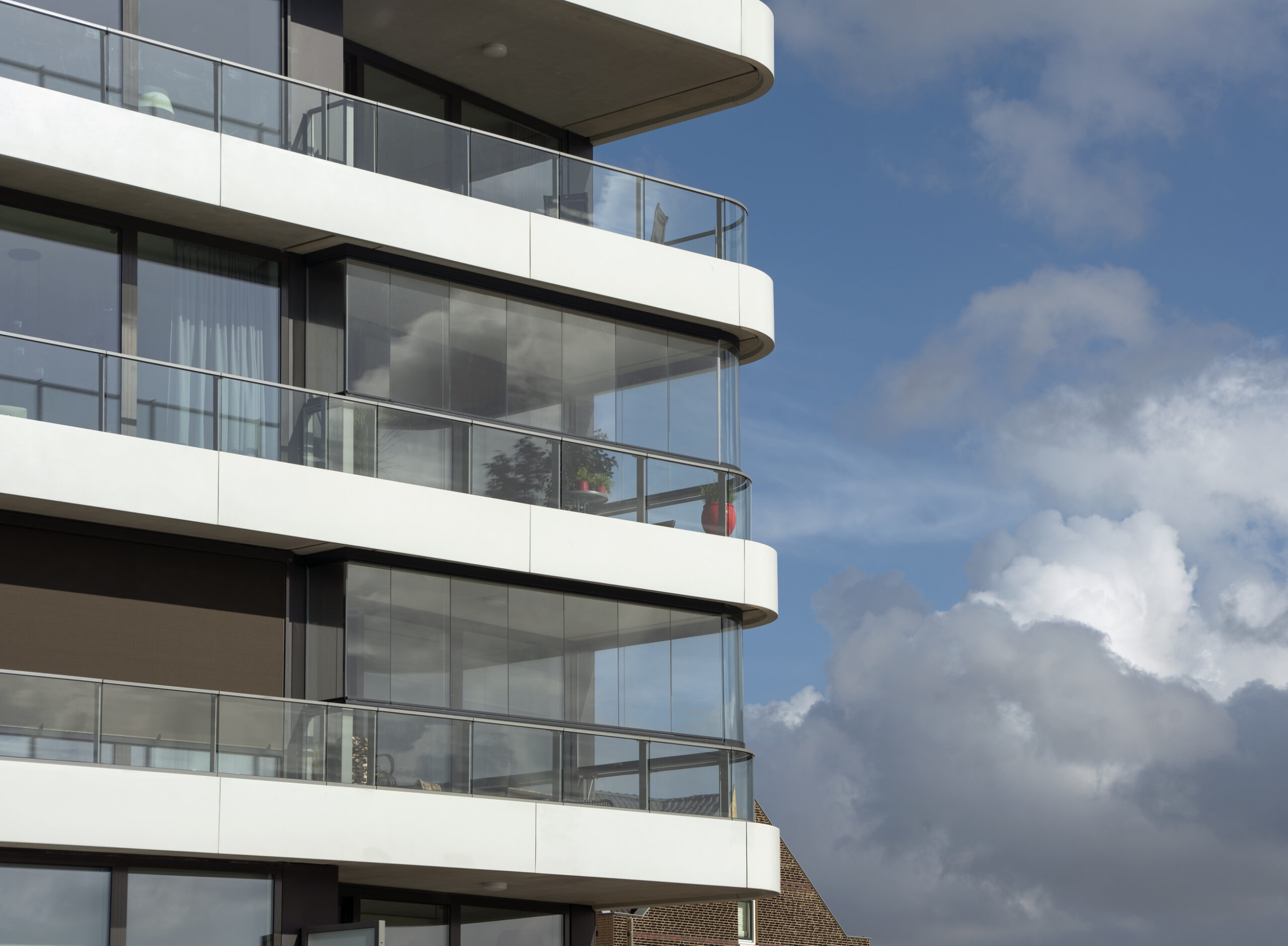Naast het leveren van al het paneelhekwerk met glas, de aluminium privacyschermen en het lamellenhekwerk t.b.v. van de trappen binnen, hebben we ook onze samenwerking met Lumon Group laten zien. Een aantal balkons hebben we namelijk voorzien van glazen vouwschermen. Zo kan je genieten van het buitenleven zonder dat het uitzicht belemmerd wordt.