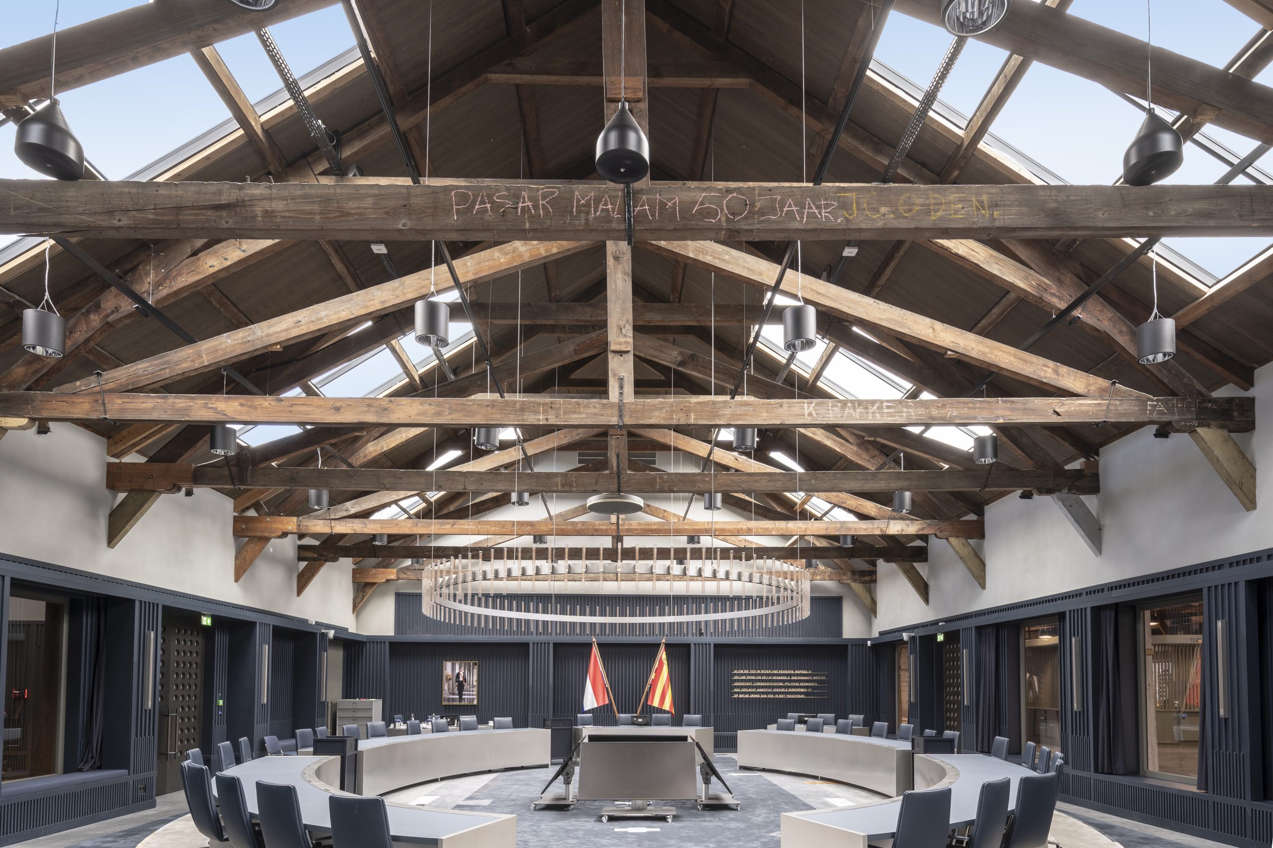 De publieke functies van het stadhuis zijn ondergebracht in de voormalige mastenloods, De bestuurs- en ambtelijke ruimtes bevinden zich in de zeilmakerij (gebouw 72) een gebouw met een beeldbepalend betoncasco uit 1949.