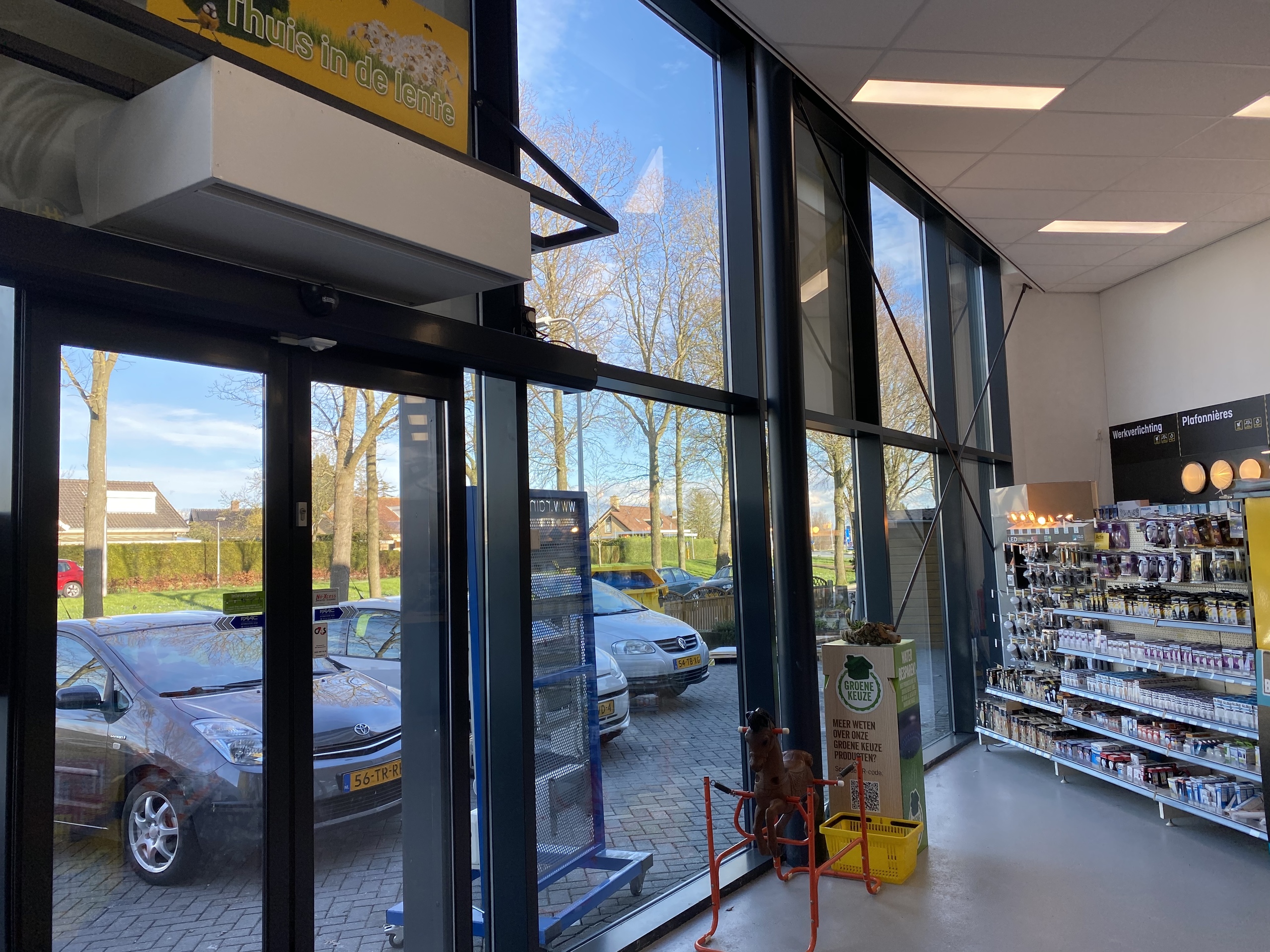 Superleuk om weer op (ja, OP) Urk een project te mogen doen. Vanuit gewoonte gaat iedereen namelijk ’s middags ‘om de kost’ en dan eten we thuis warm. Nu konden een aantal monteurs dit weer even oppakken. Deze Jansen Viss stalen vliesgevel geeft een mooie open blik in de winkel en laat vast een aantal producten zien. De bestickering op een aantal ruiten geeft een persoonlijke touch aan het filiaal. Het glas in samenwerking met Holland Glas!