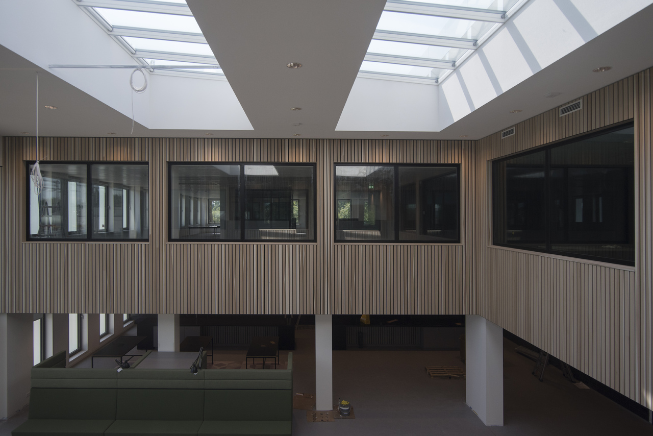 Het dak van het atrium is bekleed met semi-transparante PV panelen, die elektriciteit opwekken en tegelijkertijd als parasol voor het atrium fungeren. Het overige dakoppervlak is ook voor het grootste deel bedekt met PV panelen, die de elektriciteit opwekken t.b.v. energieneutraliteit. . Alle werkplekken in het gebouw worden verwarmd of gekoeld middels klimaatplafonds of vloerverwarming, aangesloten op een WKO installatie. Het nieuwe gebouwdeel behaald een Breeam Excellent score. Bijzondere duurzame toepassingen zijn ondermeer: inlands populier voor de bekleding van het atrium, toepassing van een vegetatiedak, LED verlichting en toepassing van veel groen in het gebouwinterieur.